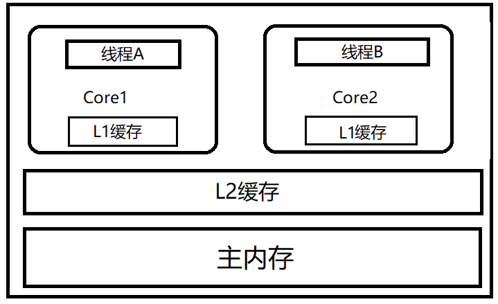 ## 并行与并发区别 并发指同一**时间段**多个任务同时都在进行,并且都没有执行结束,而并行是说在**单位时间**内多个任务在同时运行。 并发任务强调在一个时间段内同时进行,而一个时间段有多个单位i时间构成,所以说并发的多个任务在单位时间内不一定同时在执行。 一个CPU同时只能执行一个任务,所以单CPU时代多个任务都是并发执行的。 > 注:在多线程时间中,线程的个数往往多于CPU个数,所以即使存在并行任务,一般还是称为多线程并发编程而非多线程并行编程。 ## Java中的线程安全问题 示例:计数器问题 | | t1 | t2 | t3 | t4 | | ----- | --------------------------- | --------------------------- | --------------------- | ---------- | | 线程A | 从主内存读取count值到本线程 | 递增本地线程count的值 | 写回主内存 | | | 线程B | | 从主内存读取count值到本线程 | 递增本地线程count的值 | 写回主内存 | 假设count初始值为0,线程A在t1和t2时间读取了主内存中的count并在本地将其递增为1,t2时线程B从主内存中读取了count的值0并于t3时将其递增为1,t3时线程A将count的新值1更新到主内存,t4时线程B进行了同样的操作,最终主内存中count的值为1而非我们想要的2。 ## Java中共享变量的内存可见性问题  如图是一个双核CPU模型,每个核都有自己的一级缓存,有些架构里还有一个所有CPU共享的二级缓存。 现假设线程A和线程B同时处理一个共享变量,由于Cache的存在,将会出现**内存不可见**问题,原因如下: - 线程A先获取共享变量X的值(假设X=0),由于L1和L2缓存中都没有X的值,线程A会直接从主存中去取X的值并将其缓存到L1和L2中。然后A将X的值递增为1,将其写入缓存L1和L2,并刷新到主存。 - 线程B也要获取X的值,由于Core2中1级缓存没有X的值,B会从L2缓存取到X的值1。然后B修改X为2,将其更新至L1、L2和主存。 - 线程A又需要获取X的值,发现L1中已经有了,但此时A获得的X=1,与主存中X=2不同了! ## synchronized关键字 synchronized关键字是一种原子性内置锁,线程进入synchronized代码块前会自动获取监视器锁,这时其他线程再访问该同步代码块是会被阻塞挂起。 前面的共享变量内存可见性问题主要是线程的工作内存导致的,而synchronized的内存语义可以解决此问题。 synchronized的内存语义: - 进入synchronized块:把synchronized块中使用到的变量从线程的工作内存中清除,这样当synchronized块中要使用该变量时,就会从主存中去取。 - 离开synchronized块:把synchronized块中对共享变量的修改刷新到主内存。 ### 示例 ```java public class ThreadSafeInteger { private int value; public synchronized int get() { return value; } public synchronized void set(int value) { this.value = value; } } ``` > 注1:get()方法虽然只是读操作,但仍要加上synchronized来实现value的内存可见性。 > > 注2:使用synchronized虽然解决了共享变量value的内存可见性问题,但由于synchronized是独占锁,同时只能有一个线程调用get()方法,其他调用线程则会被阻塞,同时存在线程切换、调度的开销,效率并不高。 ## volatile关键字 当一个变量声明为volatile时,线程在写入变量时就不会把值缓存,而是直接把值刷新到主存中;当其他线程读取该变量时,会从主存中重新获得最新值,而不是使用当前工作内存中的值。 ### 示例 ```java public class ThreadSafeInteger { private volatile int value; public int get() { return value; } public void set(int value) { this.value = value; } } ``` > 注:volatile虽然保证了可见性,但并不保证操作的原子性。 ### volatile不保证原子性示例 ```java public class Test { private static volatile long _longVal = 0; public static void main(String[] args) { Thread t1 = new Thread(new LoopVolatile1()); t1.start(); Thread t2 = new Thread(new LoopVolatile2()); t2.start(); try{ t1.join(); t2.join(); }catch(Exception e){ e.printStackTrace(); } System.out.println("final val is: " + _longVal); } private static class LoopVolatile1 implements Runnable { public void run() { long val = 0; while (val < 100000) { _longVal++; val++; } } } private static class LoopVolatile2 implements Runnable { public void run() { long val = 0; while (val < 100000) { _longVal++; val++; } } } } ``` 运行上述代码,发现每次输出不同。 ### 使用场景 - 写入变量值不依赖当前值。如果依赖当前值,将是获取-计算-写入三步,这三步并非原子性,volatile也不保证原子性。 - 读写变量值时没有加锁。因为加锁本身已经保证了内存可见性,再使用volatile就是画蛇添足。 ## Java中的CAS操作 CAS即Compare And Swap,JDK中Unsafe类提供了一系列的compareAndSwap*方法。 ### 示例 下面以compareAndSwapLong(Object obj, long valueOffset, long expect, long update)方法为例进行介绍 boolean compareAndSwapLong(Object obj, long valueOffset, long expect, long update)方法:如果obj对象中内存偏移值为valueOffset的变量值为expect,则使用新的值update替换之。这是处理器提供的一个原子性指令。 ### ABA问题 #### 问题描述 假如线程A要去通过CAS修改变量X,要先判断X当前值是否改变过,如果“未改变”,则更新之。但这并不能保证X没有被改变过:假如A修改X前,线程B修改了X的值,然后又修改回来,A的CAS操作仍能成功,但X实际上发生过改变。 #### 解决方案 JDK中的AtomicStampedReference类给每个变量都配备了一个时间戳,从而避免了ABA问题的产生。 ## Unsafe类 JDK的rt.jar 包中的UnSafe类提供了硬件级别的原子性操作,Unsafe类中的方法都是native方法,使用JNI的方式访问本地C++实现库。 Unsafe类可以直接操作内存,这是不安全的,如果是普通的调
