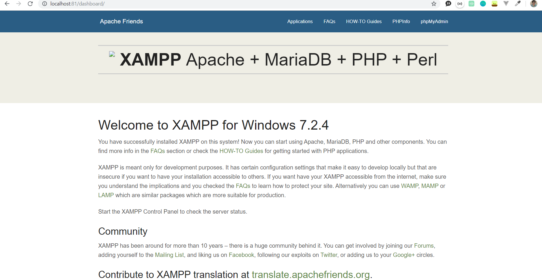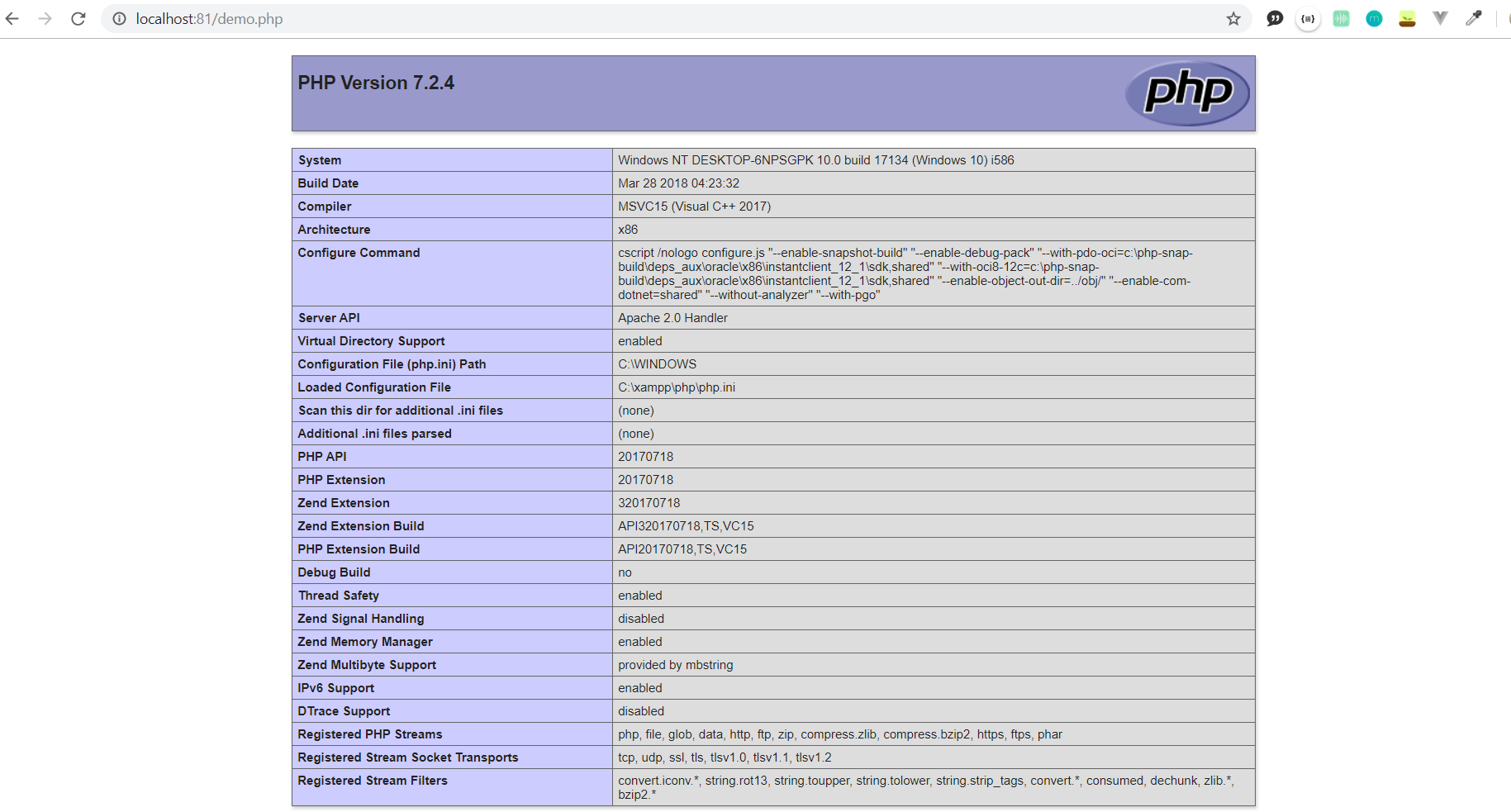 在本地机器上设置 PHP 环境的步骤:在本地机器上设置 PHP 基本上有两种方法,它们是: 使用多合一软件包(XAMPP & WAMP)。(推荐) 手动安装所有必需的软件包(MySQL,PHP和Apache)并配置它们。 我们将介绍一种在本地机器上安装 PHP 的简单且几乎无错误的方法,该方法是在一个名为 XAMPP 的软件包中使用所有方法。 安装 XAMPP 的步骤: 正在下载 XAMPP:您可以从官方网站下载XAMPP软件,其中包含最新的Windows版本和最新的PHP版本。 打开下载的.exe文件:打开下载的文件后,您将看到一个弹出窗口,单击“是”并继续。 点击“下一步”:您将看到 XAMPP 的欢迎窗口,如下所示,单击下一步。  选择组件:选择要安装的组件。请选择 MySQL 和 phpMyAdmin 组件,所有其他组件对于本教程都是可选的。  选择安装位置:选择要安装 XAMPP 的位置,默认值为 C:\xampp。  单击下一步:单击下一步,将开始安装。  打开XAMPP控制面板:在本地机器上成功安装 XAMPP 后,通过在窗口搜索栏中搜索“XAMPP 控制面板”或转到 XAMPP 的安装目录来打开控制面板。您将看到如下所示的窗口。  配置Apache*:此步骤是可选的,即如果您在 windows 10 上遇到一些与阻止端口相关的问题。 打开 Apache 的配置文件,如下图所示。  按 CTRL + F 并搜索 LISTEN 80。将端口 80 替换为类似 81 的内容,然后保存文件并重新启动控制面板。  启动 Apache 服务器:启动 Apache 服务器 通过单击开始按钮,您将在 Apache 列的前面看到一个端口号。您可以随时停止服务,只需单击开始按钮即可启动任何服务。  检查安装:转到浏览器并键入 localhost:81(如果您没有更改端口,则直接键入 localhost)。您将看到如下所示的页面。  检查 PHP 安装:在安装目录的 htdocs 文件夹中创建一个 php 文件。(C:/XAMPP/htdocs)并在其中添加以下代码。 ``` <?php echo phpinfo(); ?> ``` 将文件另存为 demo.php然后转到浏览器并键入 localhost:81/demo.php(或者只是 localhost/demo.php以防您没有更改端口)。 如果安装正常,您将看到如下所示的结果。  如果以上所有事情都顺利,那么恭喜你!您已成功在本地计算机上设置 PHP 开发环境。