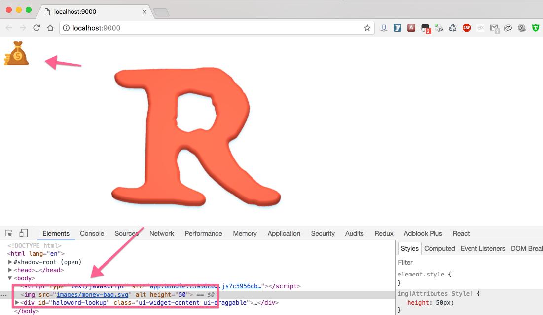 这节我们来讲一个比较重要的内容,就是如何打包图片,这也是很多人问的一个问题。 我们首先在网站上加个图片,就在 css 里加,加个背景图。 # 在 src 目录下新建 images 目录 ``` $ mkdir src/images ``` src/app.scss ``` body { background: url('./images/logo.png') 0 0 no-repeat; ... } ``` 你要确保 src/images 下有 logo.png 这张图片(随便在网络上找一张)。 然后 npm run dev,你会发现类似下面的错误:  只要找到适合的 loader 来处理扩展名为 png 的图片文件即可。 ### file-loader 我找到了一个:file-loader。 官方对这个 loader 的定义是这样的: Instructs webpack to emit the required object as file and to return its public URL 大概意思是:对一些对象作为文件来处理,然后可以返回它的URL。 还是看下面操作一遍就会知道的。 先准备一些数据。 之前我们是用 pug(查看如何使用 pug (jade) 作为 HTML 的模板) 来作为 HTML的模板的,我们还原回来,重新使用 html 作为模板。 src/index.html ``` <!DOCTYPE html> <html lang="en"> <head> <meta charset="UTF-8"> <title></title> </head> <body> </body> </html> ``` webpack.config.js ``` plugins: [ new CleanWebpackPlugin(pathsToClean), new HtmlWebpackPlugin({ // 这里注意一下,不再用 pug 模板,还是用回之前的 index.html template: './src/index.html', filename: 'index.html', minify: { collapseWhitespace: true, }, hash: true, excludeChunks: ['contact'] }), ... ``` 关键时刻来了。 安装。 ``` $ npm install --save-dev file-loader ``` webpack.config ``` ... module.exports = { ... module: { rules: [ ... { test: /\.png$/, use: [ { loader: 'file-loader', }, ] }, ] } }; ``` 效果如下:  这里文件名带着 hash ,我们要如何让 file-loader 输出图片的原文件名呢? ### file-loader 的参数 其实,file-loader 是可以带参数的,例如下面这样: ``` test: /\.(gif|png|jpe?g|svg)$/i, use: [ { loader: 'file-loader', options: { name: '[name].[ext]', outputPath: 'images/' } }, ``` /\.(gif|png|jpe?g|svg)$/i 表示可以处理好多图片的格式,毕竟不只是 png 才是图片,别的扩展名的文件也可能是图片嘛。 [name] 代表文件名,[ext] 代表文件扩展名,outputPath 是输出的路径。 试试效果:  good! ### 解析 html 代码里面 img 的标签 忘了一个重要的地方,之前我们是在 CSS 里引用图片作为背景的,但是,我们经常是在 html 直接使用 src 标签来引用图片的。 例如下面这样: ``` <img src="./images/money-bag.svg" alt="" height=50> ``` 然而结果是这样的:  404了,文件找不到,没有成功。 其实缺少了一个在 html 代码里处理 img 标签的 loader。 这个 loader 是 html-loader 官方对它的定义是这样的: Exports HTML as string. HTML is minimized when the compiler demands. 大概意思是说,把 html 变成导出成字符串的过程中,还能进行压缩处理(minimized)。 现在我们来加上这个 loader。 先安装。 ``` $ npm install --save-dev html-loader ``` ``` ... { test: /\.(gif|png|jpe?g|svg)$/i, use: [ { loader: 'file-loader', options: { name: '[name].[ext]', outputPath: 'images/' } }, ] }, // 下面几行才是 html-loader 的配置内容 { test: /\.html$/, use: [ { loader: 'html-loader', options: { minimize: true } }], } ... ``` 再试试发现就可以了。  ### 压缩图片 有时候图片太大,我们输出到生产环境的时候,希望可以让图片文件的体积小点,webpack 也可以轻易办到,就是自动压缩图片,然后生产环境拿到的图片就会很小。 还是用一个插件,这个插件叫 image-webpack-loader。 这个插件主要是来压缩图片文件的。 安装。 ``` $ npm install image-webpack-loader --save-dev ``` ``` webpack.config.js { test: /\.(gif|png|jpe?g|svg)$/i, use: [ { loader: 'file-loader', options: { name: '[name].[ext]', outputPath: 'images/' } }, { loader: 'image-webpack-loader', options: { bypassOnDebug: true, } } ] }, { test: /\.html$/, use: [ { loader: 'html-loader', options: { minimize: true } }], } ``` 源文件的图片大小情况是这样的: ``` $ ls -lh src/images total 256 -rw-r--r--@ 1 hfpp2012 staff 112K Nov 3 23:10 logo.png -rw-r--r--@ 1 hfpp2012 staff 11K Dec 4 16:32 money-bag.svg ``` 而压缩后(npm run prod): ``` $ ls -lh dist/images total 96 -rw-r--r-- 1 hfpp2012 staff 33K Dec 4 21:34 logo.png -rw-r--r-- 1 hfpp2012 staff 8.5K Dec 4 21:34 money-bag.svg ``` 由上面的对比可知,压缩后体积减少了一些。 当然这个插件,肯定还有更多的用法,具体查看 readme 文档吧。