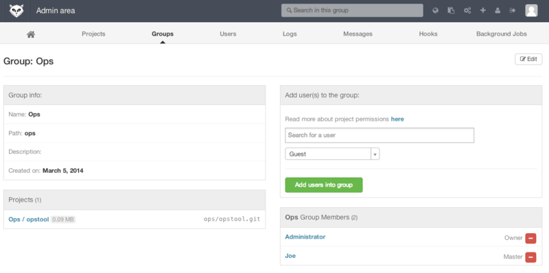 但如果你正在寻找一个更现代,功能更全的 Git 服务器,这里有几个开源的解决方案可供你选择安装。因为 GitLab 是其中最出名的一个,我们将它作为示例并讨论它的安装和使用。这比 GitWeb 要复杂的多并且需要更多的维护,但它的确是一个功能更全的选择。 安装 GitLab 是一个数据库支持的 web 应用,所以相比于其他 git 服务器,它的安装过程涉及到更多的东西。幸运的是,这个过程有非常详细的文档说明和支持。 这里有一些可参考的方法帮你安装 GitLab 。为了更快速的启动和运行,你可以下载虚拟机镜像或者在 https://bitnami.com/stack/gitlab 上获取一键安装包,同时调整配置使之符合你特定的环境。Bitnami 的一个优点在于它的登录界面(通过 alt-&rarr 键进入;);它会告诉你安装好的 GitLab 的 IP 地址以及默认的用户名和密码。  无论如何,跟着 GitLab 社区版的 readme 文件一步步来,你可以在这里找到它 https://gitlab.com/gitlab-org/gitlab-ce/tree/master 。在这里你将会在主菜单中找到安装 GitLab 的帮助,一个可以在 Digital Ocean 上运行的虚拟机,以及 RPM 和 DEB 包(都是测试版)。这里还有 “非官方” 的引导让 GitLab 运行在非标准的操作系统和数据库上,一个全手动的安装脚本,以及许多其他的话题。 管理 GitLab 的管理界面是通过网络进入的。将你的浏览器转到已经安装 GitLab 的 主机名或 IP 地址,然后以管理员身份登录即可。默认的用户名是 admin@local.host,默认的密码是 5iveL!fe(你会得到类似 请登录后尽快更换密码 的提示)。登录后,点击主栏上方靠右位置的 “Admin area” 图标进行管理。 使用者 GitLab 上的用户指的是对应协作者的帐号。用户帐号没有很多复杂的地方,主要是包含登录数据的用户信息集合。每一个用户账号都有一个 命名空间 ,即该用户项目的逻辑集合。如果一个叫 jane 的用户拥有一个名称是 project 的项目,那么这个项目的 url 会是 http://server/jane/project 。  移除一个用户有两种方法。“屏蔽(Blocking)” 一个用户阻止他登录 GitLab 实例,但是该用户命名空间下的所有数据仍然会被保存,并且仍可以通过该用户提交对应的登录邮箱链接回他的个人信息页。 而另一方面,“销毁(Destroying)” 一个用户,会彻底的将他从数据库和文件系统中移除。他命名空间下的所有项目和数据都会被删除,拥有的任何组也会被移除。这显然是一个更永久且更具破坏力的行为,所以很少用到这种方法。 组 一个 GitLab 的组是一些项目的集合,连同关于多少用户可以访问这些项目的数据。每一个组都有一个项目命名空间(与用户一样),所以如果一个叫 training 的组拥有一个名称是 materials 的项目,那么这个项目的 url 会是 http://server/training/materials 。  每一个组都有许多用户与之关联,每一个用户对组中的项目以及组本身的权限都有级别区分。权限的范围从 “访客”(仅能提问题和讨论) 到 “拥有者”(完全控制组、成员和项目)。权限的种类太多以至于难以在这里一一列举,不过在 GitLab 的管理界面上有帮助链接。 项目 一个 GitLab 的项目相当于 git 的版本库。每一个项目都属于一个用户或者一个组的单个命名空间。如果这个项目属于一个用户,那么这个拥有者对所有可以获取这个项目的人拥有直接管理权;如果这个项目属于一个组,那么该组中用户级别的权限也会起作用。 每一个项目都有一个可视级别,控制着谁可以看到这个项目页面和仓库。如果一个项目是 私有 的,这个项目的拥有者必须明确授权从而使特定的用户可以访问。一个 内部 的项目可以被所有登录的人看到,而一个 公开 的项目则是对所有人可见的。注意,这种控制既包括 git “fetch” 的使用也包括对项目 web 用户界面的访问。 钩子 GitLab 在项目和系统级别上都支持钩子程序。对任意级别,当有相关事件发生时,GitLab 的服务器会执行一个包含描述性 JSON 数据的 HTTP 请求。这是自动化连接你的 git 版本库和 GitLab 实例到其他的开发工具,比如 CI 服务器,聊天室,或者部署工具的一个极好方法。 基本用途 你想要在 GitLab 做的第一件事就是建立一个新项目。这通过点击工具栏上的 “+” 图标完成。你会被要求填写项目名称,也就是这个项目所属的命名空间,以及它的可视层级。绝大多数的设定并不是永久的,可以通过设置界面重新调整。点击 “Create Project”,你就完成了。 项目存在后,你可能会想将它与本地的 Git 版本库连接。每一个项目都可以通过 HTTPS 或者 SSH 连接,任意两者都可以被用来配置远程 Git。在项目主页的顶栏可以看到这个项目的 URLs。对于一个存在的本地版本库,这个命令将会向主机位置添加一个叫 gitlab 的远程仓库: $ git remote add gitlab https://server/namespace/project.git 如果你的本地没有版本库的副本,你可以这样做: $ git clone https://server/namespace/project.git web 用户界面提供了几个有用的获取版本库信息的网页。每一个项目的主页都显示了最近的活动,并且通过顶部的链接可以使你浏览项目文件以及提交日志。 一起工作 在一个 GitLab 项目上一起工作的最简单方法就是赋予协作者对 git 版本库的直接 push 权限。你可以通过项目设定的 “Members(成员)” 部分向一个项目添加写作者,并且将这个新的协作者与一个访问级别关联(不同的访问级别在 “组” 中已简单讨论)。通过赋予一个协作者 “Developer(开发者)” 或者更高的访问级别,这个用户