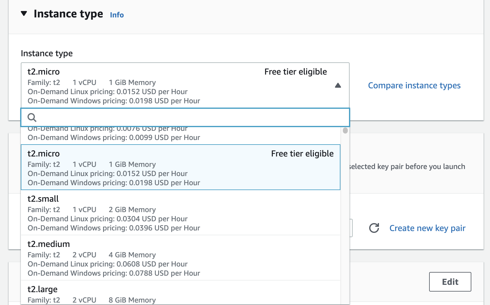 **aws-EC2介绍** Amazon Elastic Compute Cloud 为什么叫EC2,就是上面4个单词的缩写,后面还有其它的一些服务会采用这种缩写方法,比如后面要接触到的S3服务。 翻译过来就是amazon 弹性 计算 云服务 再直白一点理解就是,在aws云上管理的服务器 ------------ **云服务器的特点** 从ec2的名字上面我们就能看出来,最大的特点是弹性。 **能够支持自动扩容** 比如,一台8g内存的服务器,如果性能不够了,想要升级,如果是运行在云服务器上,就可以平滑地升级,甚至可以做到自动扩容。 自动扩容,会根据当前服务器随的负载,根据用户配的扩容规则,进行自动扩容。不仅仅是上面举例的内存,其它的如CPU、硬盘等,都可以随时扩容。 **安全** 云服务会为我们提供很多安全解决方案,包括监控、报警、防攻击,漏洞扫描等等。如果是自己搭建的服务器,做好这些方面的工作需要非常专业的技能以及人力和时间,还有维护成本等。 ------------ ec2虽然主要是用做云服务器使用,但它也需要配合其它的服务一起始用才可以。 比如,后面我会会介绍的VPC、Load Balance等 ------------ **实例 Instance** 一个实例相当于一台服务器,这跟我们前面的课程中阿里云购买的ecs是同一个东西。 通过Service -- 找到 EC2 服务来购买EC2服务  购买后的EC2服务器被称为Resource,资源。 EC2面板会为我们列出已购买的实例列表,包括这些实例有哪些正在运行,running. ------------ **aws计费方式** 在aws里没有购买服务器这样的说法,取代它的叫法是Launch Instances,运行实例。 在这里需要跟大家介绍一下aws的收费方式。 aws在创建账号的时候,需要用户绑定信用卡,这个信用卡目前只支持VISA、America Express、Master、JCB等国外信用卡,另外还可以使用美国运通卡开通。 美国运通卡在国内的银行是可以申请的。 当用户使用信用卡绑定了帐号后,信用卡就与aws公司建立了扣费关系。 信用卡的收费结算周期是按月结算,也就是说,你每个月的月初可以看到上月消费情况,费用会从你的信用卡里扣除。下图为aws的账单管理页面:  ------------ **免费服务器** 所以,aws这里并没有购买实例这种说法,而是运行实例。 你可以运行任意台服务器,aws会为你计算你运行这些服务器每月实际产生的费用。 值得一提的是,aws为用户提供了一台免费实例,该实例的配置规格较低,但用来做学习、测试用还是足够的,免费期限是一年。 免费服务器的实例类型是: t2.micro ------------ **运行实例:** 我们点击右上角的运行实例按钮,就可以运行一台新的服务器。 运行实例的步骤: 1.填写实例名称:  2.选择系统镜像  这里和前面讲的阿里云服务是一样的,可以选择创建Linux系统、windows系统、甚至可以是macos。 3.选择实例类型 这一步就是选择我们具体的服务器配置,包括cpu的核数,内存大小等。  4.配置安全组  安全组我们在前面的阿里云课程中已经为大家介绍过了,aws的安全组这里也并无差别,都是限制监听端口与ip的访问限制功能。 5.磁盘空间配置  这一步主要是配置硬盘大小的。 ------------ 前面我们介绍了aws的收费规则,aws会按照我们选择的具体配置,来计算实际生成的费用。 在aws创建实例的过程中,并不是像阿里云那样,会在下面计算出一个金额,aws完全采用了按量付费的计费规则。 ------------ 在后面的过程中,还会我们增加一步生成pairkey的步骤,我们点击生成后,需要把key文件下载到本地,保存好。 aws实例登录的规则不像阿里云那样,使用用户名密码登,而是使用指定key文件登录。 当然,如果key文件丢失了,我们也可以重新生成。 在ec2面板里找到key pairs面板,可以创建新的key:  ------------ 经过上面的一些步骤,我们一台aws实例就配置好了,点击右侧的运行实例,返回到实例面板,我们就会在列表中看到我们新增加的EC2实例。