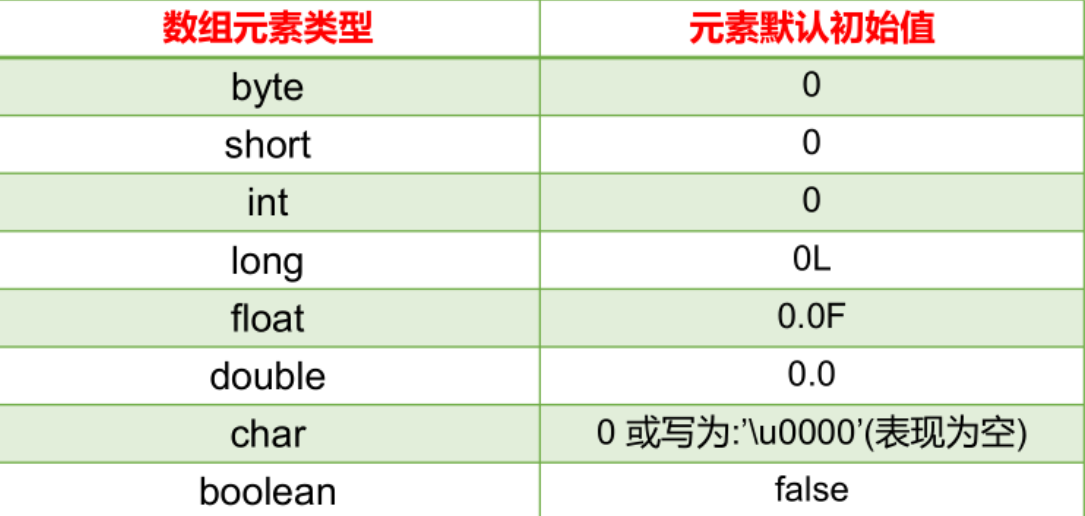 当我们使用动态初始化数据的时候: ```bash 数据类型[] 数组名= new 数据类型[长度]; ``` ● 此时,只确定了数组的长度,那么数组中的元素是什么? ● 数组的元素具有默认值: