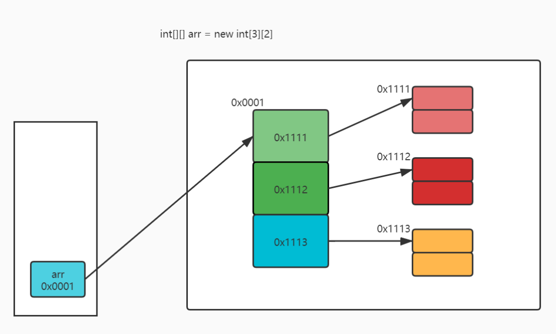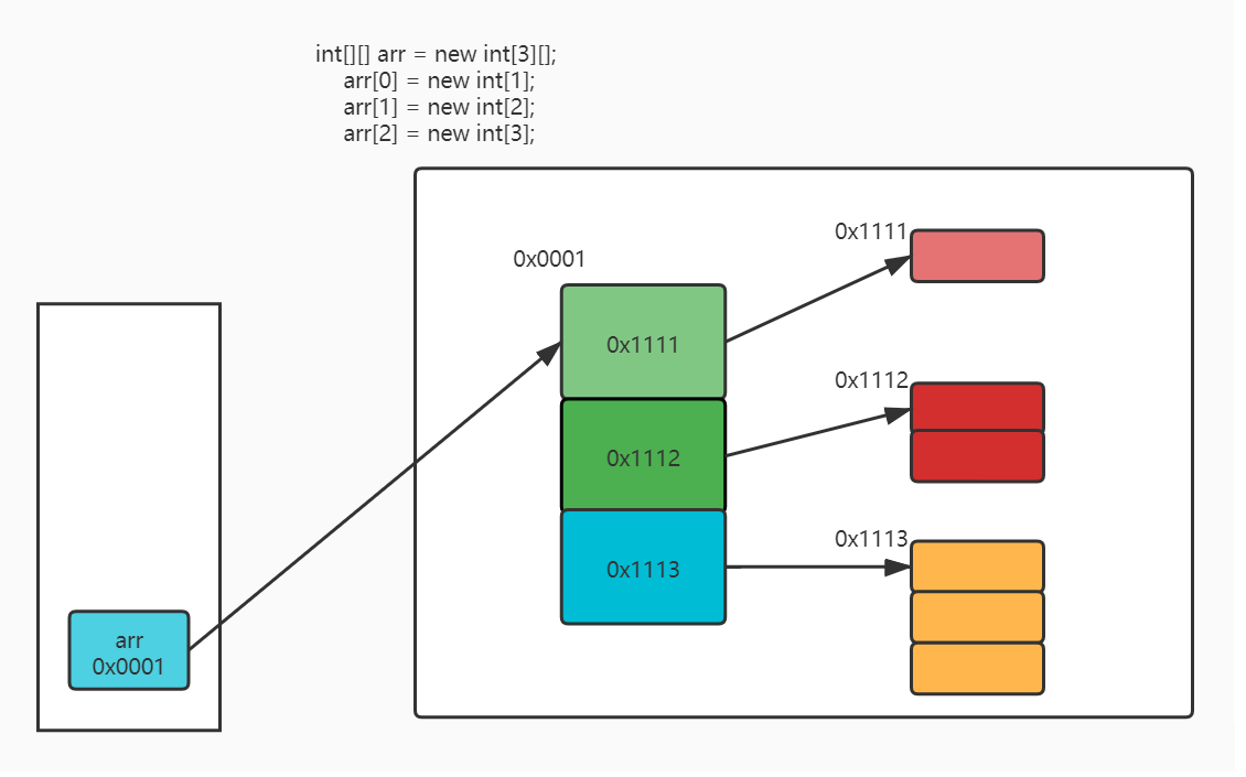9.1 概述 - 二维数组本质上就是元素为一维数组的数组。 - 二维数组的标记:[][] 。 ```bash int[][] arr; // arr是一个二维数组,可以看成是int[]一维数组的一个数组 ``` 二维数组也可以看成是一个二维表,行和列组成的二维表,只不过这个二维表中的每一行的列数可能不同。但是每一个单元格中的元素的数据类型是一致的,例如,都是 int、String 等类型。 9.2 二维数组的语法 9.2.1 动态初始化1 语法: ```bash 数据类型[][] 数组名 = new 数据类型[m][n] ``` - 解释: - m 表示这个二维数组有多少个一维数组。换言之,一共多少行。 - n 表示每个一维数组中的元素有多少个,换言之,一共有多少个单元格。 - 二维数组的访问和赋值方式和一维数组类似。 ```bash // 二维数组中元素的访问 数据类型 元素名 = 二维数组名[行下标][列下标]; ``` ```bash // 二维数组中元素的赋值 二维数组名[行下标][列下标] = 值; ``` 内存图:  示例: ```bash /** * 二维数组的动态初始化 * * @author maxiaoke.com * @version 1.0 */ public class ArrayTest6 { public static void main(String[] args) { // 定义了一个名称为arr的二维数组 // arr中有3个一维数组,每个一维数组中有2个元素。每个一维数组的名称是:arr[0]、arr[1]、arr[2]、 int[][] arr = new int[3][2]; // 二维数组元素的访问 System.out.println("二维数组的元素的访问 = " + arr[0][0]); System.out.println("二维数组的元素的访问 = " + arr[0][1]); System.out.println("二维数组的元素的访问 = " + arr[1][0]); System.out.println("二维数组的元素的访问 = " + arr[1][1]); System.out.println("二维数组的元素的访问 = " + arr[2][0]); System.out.println("二维数组的元素的访问 = " + arr[2][1]); // 二维数组中的元素赋值 arr[0][0] = 1; arr[0][1] = 2; arr[1][0] = 3; arr[1][1] = 4; arr[2][0] = 5; arr[2][1] = 6; System.out.println("赋值之后的二维数组的元素的访问 = " + arr[0][0]); System.out.println("赋值之后的二维数组的元素的访问 = " + arr[0][1]); System.out.println("赋值之后的二维数组的元素的访问 = " + arr[1][0]); System.out.println("赋值之后的二维数组的元素的访问 = " + arr[1][1]); System.out.println("赋值之后的二维数组的元素的访问 = " + arr[2][0]); System.out.println("赋值之后的二维数组的元素的访问 = " + arr[2][1]); } } ``` 9.2.2 动态初始化2 - 语法: ```bash 数据类型[][] 数组名 = new 数据类型[m][]; ``` ```bash 数组名[行下标] = new 数据类型[n]; ``` - 解释: - m 表示这个二维数组有多少个一维数组,每个一维数组的元素的默认初始化值是 null 。 - n 表示给对一维数组进行初始化。 - 内存示意图:  示例: ```bash /** * 二维数组的动态初始化 * * @author maxiaoke.com * @version 1.0 */ public class ArrayTest7 { public static void main(String[] args) { // 动态创建一个二维数组 int[][] arr = new int[3][]; arr[0] = new int[1]; arr[1] = new int[2]; arr[2] = new int[3]; // 二维数组的元素的访问 System.out.println("二维数组的元素的访问 = " + arr[0][0]); System.out.println("二维数组的元素的访问 = " + arr[1][0]); System.out.println("二维数组的元素的访问 = " + arr[1][1]); System.out.println("二维数组的元素的访问 = " + arr[2][0]); System.out.println("二维数组的元素的访问 = " + arr[2][1]); System.out.println("二维数组的元素的访问 = " + arr[2][2]); // 二维数组中元素的赋值 arr[0][0] = 1; arr[1][0] = 2; arr[1][1] = 3; arr[2][0] = 4; arr[2][1] = 5; arr[2][2] = 6; System.out.println("赋值之后的二维数组的元素的访问 = " + arr[0][0]); System.out.println("赋值之后的二维数组的元素的访问 = " + arr[1][0]); System.out.println("赋值之后的二维数组的元素的访问 = " + arr[1][1]); System.out.println("赋值之后的二维数组的元素的访问 = " + arr[2][0]); System.out.println("赋值之后的二维数组的元素的访问 = " + arr[2][1]); System.out.println("赋值之后的二维数组的元素的访问 = " + arr[2][2]); } } ``` 9.2.3 静态初始化 语法: ```bash 数据类型[][] 数组名 = new int[][]{{元素1,元素2,...},{元素1,元素2,...},{元素1,元素2,...},...} 数据类型[][] 数组名 = {{元素1,元素2,...},{元素1,元素2,...},{元素1,元素2,...},...} 数据类型[][] 数组名 ; 数组名 = new int[][]{{元素1,元素2,...},{元素1,元素2,...},{元素1,元素2,...},...} ``` 示例: ```bash /** * 二维数组的静态初始化 * * @author maxiaoke.com * @version 1.0 */ public class ArrayTest8 { public static void main(String[] args) { // 二维数组的静态初始化 int[][] arr = new int[][]{{1,2}, {2, 3}, {4, 5, 6}}; // 二维数组元素的访问 System.out.println("二维数组的元素的访问 = " + arr[0][0]); System.out.println("二维数组的元素的访问 = " + arr[0][1]); System.out.println("二维数组的元素的访问 = " + arr[1][0]); System.out.println("二维数组的元素的访问 = " + arr[1][1]); System.out.println("二维数组的元素的访问 = " + arr[2][0]); System.out.println("二维数组的元素的访问 = " + arr[2][1]); System.out.println("二维数组的元素的访问 = " + arr[2][2]); } } ``` 9.3 二维数组的名称以及表达方式 二维数组的长度/行数: ```bash 二维数组名.length ``` 二维数组的某一行: ```bash // 行下标的范围是[0,二维数组名.length-1] 二维数组名[行下标] ``` 二维数组的某一行的列数: ```bash // 二维数组的每一行是一个一维数组 二维数组名[行下标].length ``` 二维数组的某一个元素: ```bash 二维数组名[行下标][列下标] ``` 9.4 二维数组的遍历 - 语法: ```bash for(int i=0; i<二维数组名.length; i++){ for(int j=0; j<二维数组名[i].length; j++){ System.out.print(二维数组名[i][j]); } System.out.println(); } ``` 示例: 