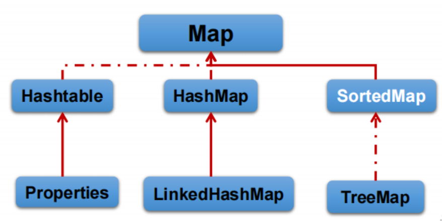 ● Map 和 Collection 并列存在。用于保存具有映射关系的数据:key - value 。 ● Map 中的 key 和 value 可以是任何引用类型的数据。 ● Map 中的 key不允许重复,即同一个 Map 对象所对应的类,必须重写 equals() 和 hashCode() 方法。 ● 通常情况下,使用 String 作为 Map 的 key 。 ● Map 中的 key 和 value 之间存在单向一对一的关系,即通过指定的 key 能找到唯一的、确定的 value 。 ● Map 接口的常用实现类:HashMap 、TreeMap 、LinkedHashMap 和 Properties 。其中,HashMap 是 Map 接口使用频率最高的实现类。