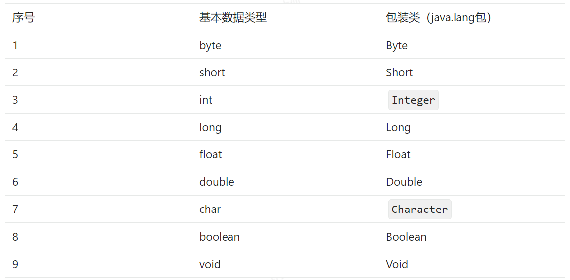 12.1 概述 - Java 提供了两种数据类型:基本数据类型和引用数据类型。 - 使用基本数据类型在于效率,然而要使用只针对对象设计的 API 或新特性(如:泛型),那么基本数据类型的数据就需要用包装类来包装了。 - Java 针对基本数据类型定义了相应的引用类型,这些对应的引用类型称为包装类。 - 有了类的特点,就可以调用类中的方法,Java 才是真正的面向对象。  温馨提示:Byte 、Short 、Integer 、Long 、Float 、Double 的父类是 Number 。 - 示例: ```bash package com.wrapper.demo1; /** * @author maxiaoke.com * @version 1.0 * @return */ public class Test { public static void main(String[] args) { System.out.println("int数据类型的最小值 = " + Integer.MIN_VALUE); // -2147483648 System.out.println("int数据类型的足最大值 = " + Integer.MAX_VALUE); // 2147483647 // 将一个十进制的数转换为十六进制 String s = Integer.toHexString(11); System.out.println("s = " + s); // b // 将一个十进制的数转换为八进制 String s1 = Integer.toOctalString(11); System.out.println("s1 = " + s1); // 13 // 将一个十进制的数转换为二进制 String s2 = Integer.toBinaryString(11); System.out.println("s2 = " + s2); // 1011 } } ``` 12.2 装箱和拆箱 - 装箱: - 定义:将基本数据类型转换为包装类对象。 - 目的:为了使用专门为对象设计的 API 和特性。 - 拆箱: - 定义:将包装类对象转换为基本数据类型。 - 目的:一般是因为需要运算,Java 中的大多数的运算符都是为基本数据类型而设计的,比如:比较、算术等。 - 在 JDK 5 之后,可以自动进行装箱和拆箱,但是需要注意的是:只能和自己对应的类型之间才能实现自动装箱和拆箱 。 - 示例:装箱 ```bash package com.wrapper.demo2; /** * @author maxiaoke.com * @version 1.0 * @return */ public class Test { public static void main(String[] args) { int num = 10; // 通过构造函数将基本数据类型转换为包装类对象 Integer integer = new Integer(num); System.out.println("integer = " + integer); // 通过Integer.valueOf()方法将基本数据类型转换为包装类对象 Integer integer1 = Integer.valueOf(num); System.out.println("integer1 = " + integer1); } } ``` 示例:拆箱 ```bash package com.wrapper.demo2; /** * @author maxiaoke.com * @version 1.0 * @return */ public class Test2 { public static void main(String[] args) { Integer integer = new Integer(10); // 通过Integer对象的intValue方法,将包装类对象转换为基本数据类型 int i = integer.intValue(); System.out.println("i = " + i); } } ``` 示例:自动装箱 ```bash package com.wrapper.demo2; /** * 自动装箱:直接将基本类型的数据赋值给包装类类型 * * @author maxiaoke.com * @version 1.0 * @return */ public class Test3 { public static void main(String[] args) { // 自动装箱 Integer num = 10; System.out.println("num = " + num); } } ``` 示例:自动拆箱 ```bash package com.wrapper.demo2; /** * 自动拆箱:将包装类对象直接赋值给基本数据类型 * * @author maxiaoke.com * @version 1.0 * @return */ public class Test4 { public static void main(String[] args) { Integer num = 10; int i = num; System.out.println("i = " + i); } } ``` 12.3 基本数据类型、包装类和 String 间的相互转换 - 基本数据类型转换为字符串: - ① 使用 + 拼接 "" : ```bash String str = 5 + ""; ``` ② 使用 String 的重载方法 valueOf() 静态方法: ```bash String str = String.valueOf(5); ``` - 字符串转换为基本数据类型: - ① 通过包装类(除了 Character 类)的构造器: ```bash int i = new Integer("12"); ``` ② 通过包装类(除了 Character 类)的 parsetXxx(String s) 的静态方法: ```bash int i = Integer.parsetInt("12"); ``` ③ 通过包装类除了 Character 类)的 valueOf(String s) 的静态方法: ```bash int i = Integer.valueOf("12"); ``` 注意:如果字符串参数的内容无法正确的转换为对应的基本数据类型,则会抛出 java.lang.NumberFormatException 异常。 - 示例: ```bash package com.wrapper.demo3; /** * 字符串转换为基本数据类型 * * @author maxiaoke.com * @version 1.0 * @return */ public class Test { public static void main(String[] args) { String str = "12"; int num = Integer.parseInt(str); System.out.println("num = " + num); num = new Integer(str); System.out.println("num = " + num); num = Integer.valueOf(str); System.out.println("num = " + num); } } ``` 12.4 包装类对象的缓存问题 - Java 中部分包装类有缓存对象,如下所示:  【问】为什么要有缓存对象?如果每次自动装箱,都产生新对象,会发生什么? 【答】-128 ~ 127 范围内的数字在程序中出现的频率是非常高的,如果每次自动自动装箱,都产生新的对象,就会导致包装类对象泛滥,进而导致内存紧张。考虑到这一点,就会想着需要重复使用一些对象,所以就需要将这部分数据范围内的对象缓存起来。 注意: 缓存对象是针对自动装箱而言的,对于手动装箱无效。 包装类.valueof() 方法也使用缓存对象。 包装类对象不可变:包装类对象一旦修改,就是指向新对象。 如果一个基本数据类型和一个包装类型(不论它们之间是否对应,例如:Integer 和 int,Integer 和 double)进行比较(==),一定是将包装类型拆箱为基本数据类型之后再按照基本数据类型的规则进行比较。 如果两个包装类进行比较,要求必须是同一种类型(例如:Integer 和 Integer、Double 和 Double)进行比较(==),否则将编译失败。 示例: ```bash package com.wrapper.demo4; /** * 包装类的比较,可以使用 equals() 方法!!! * @author maxiaoke.com * @version 1.0 * @return */ public class Test { public static void main(String[] args) { Integer i1 = 100; // Integer.valueOf(100) Integer i2 = 100; System.out.println(i1 == i2); // true,比较的是地址,但是因为有缓存对象,所以是 true i1 = 