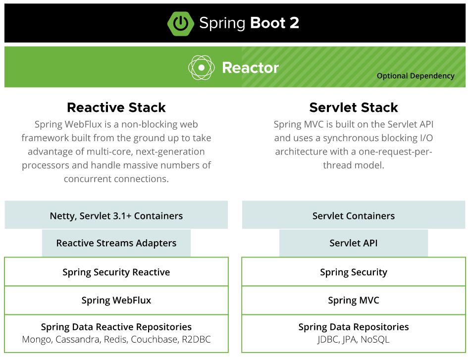 ### SpringBOOT官网 https://spring.io/projects/spring-boot 覆盖了: web开发 数据访问 安全控制 分布式 消息服务 移动开发 批处理 ...... ### Spring5重大升级 响应式编程  ### 内部源码设计 基于Java8的一些新特性,如:接口默认实现。重新设计源码架构。